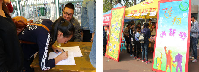 为丰富2015级新生的校园生活,帮助大家进一步发挥自身特长,10月17日,济南大学的同学们迎来了期待已久的“百团大战”。资源与环境学院创办的飞翔绿色环保协会纳新工作顺利开展。