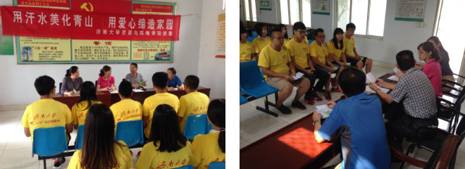 会议上,学院老师与刘委员进行了一系列的交流。刘委员为我们讲述了焦家村的发展现状,并对我们提出的环境保护的问题也连连赞同。他表示,随着人民生活水平的提高,村子周边工厂的增多,周围环境的确越来越恶劣,水污染也越来越严重,但是大多数村民不以为意,村委一定会加大力度做好环保的宣传以及环保知识的普及工作,让越来越多的村民了解环保,并在能够日常生活中保护环境。