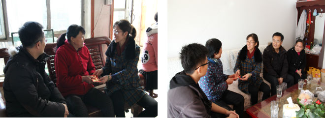 1月19日,资源与环境学院党委副书记郭英,团委书记、学办主任李蘋,学办辅导员付颖颖,班主任代表高卫东老师等一行人组成的家访小组对几位困难生同学进行了走访慰问。