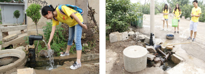 7月7日上午,资源与环境学院社会实践团的队员们首先了来到了艾家村村委会,通过向负责人仔细询问,了解了近几年政府对艾家村村民生活用水及生产用水的相关帮扶政策。稍后,队员们在村内展开细致深入的实地考察及调研,大家纷纷走进村民家中、走进田间地头,除了认真地观察村民家中生活用水和田地里生产用水的使用情况,另外还更耐心地发掘村民言语中透露出的对水资源循环利用的重视程度。队员们了解到,艾家村中各家各户家门口都已建造了手动控制水管道,并通过沟渠将初次使用过仍能继续使用的水输送到田地里进行灌溉,这种水循环利用方式既节约了时间又合理支配了水资源。