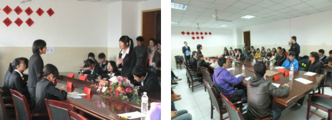 为丰富同学们的大学生活,锻炼大家的语言表达能力和团队协作能力,由资源与环境学院团委主办,资源与环境学院记者团承办的“舌战群雄,秀出自我”辩论赛于11月15日进行了收官之战。下午四点,环境1301班和环境1302班在九教301进行了冠军的争夺。资源与环境学院副院长、党委副书记陈卫东老师,三大学生组织主席和去年的两名最佳辩手组成了本场比赛的评审团。