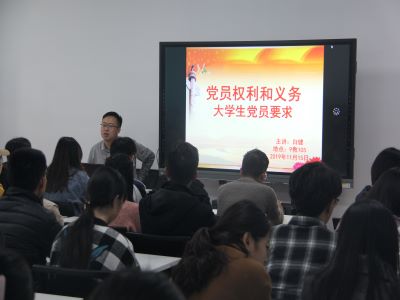 白老师首先向在场同学强调明确党员权利与义务对入党积极分子的重要性并指出党员权利与义务的定义,他强调八项权利是党的性质、宗旨和历史使命的要求,也是新的历史时期加强党的建设的需要,而党员义务则是党员对党的承诺和不可推诿的天职。随后,白老师带领同学们学习党章部分内容,提出党章对大学生党员的基本要求:入党动机端正、有敬业精神、待人诚恳、作风正派、谦虚谨慎。课程最后,白老师向同学们说明组织在确定发展对象时的考察内容,鼓励同学们要坚定理想信念,端正入党动机并对同学们寄予殷切期望。
