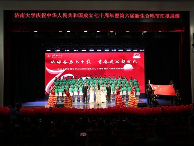 9月27日晚七点,济南大学于大礼堂举行第六届新生合唱比赛,学校党委副书记张硕秋,党委常委副校长王志,党办、校办主任张勇,党委宣传部部长丛晓峰,党委学生工作部部长贾海宁,教务处处长邱立平,党委保卫部副部长杨立存,校团委书记孙菲菲等校领导出席此次活动,德赢VWIN学院合唱团参加此次比赛,以优异的成绩荣获二等奖。