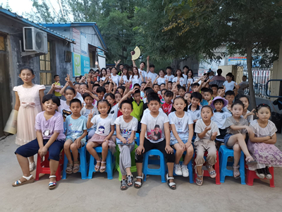 在过去的十天时间里,志愿者们以“爱心起航,让梦飞翔”为主题,通过开展早操、经典诵读、手工课、绘画课、算术课等多种课程,拓宽孩子们的视野,扩大孩子们的知识面,同时也一定程度上改善了留守儿童的教育现状,促使他们德智体美劳全面发展。然而愉快的时光总是短暂,当时间逝去,便不得不面对将要来临的分离。一天的课程结束后,支教团迎来最后的收官晚会,孩子们和老师们各有节目,两位主持人小朋友用宏亮的嗓音主持着今晚的十四个节目,《精忠报国》《三字经》等武术舞蹈表演,《你我同行》、《生而为人》等歌曲演唱,让我们充分感受到了村民的热情,回想起许多感动的瞬间,对莘县的感情进一步加深,纷纷不舍离去。