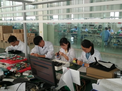 下午一点,实践团的队员们经过短暂的休息,换上防尘服准时上岗,在专业技术人员安排下,成员们进入基层车间开展实践工作。成员们的工作主要侧重于配件的焊接与组装工作,成员们经过简单的培训便可赶上生产线进度,完成生产任务。在切身参与生产的过程中,团队成员对公司的产品及运营方式有了更深刻的理解,便于从基层深入了解公司产品的实际生产流程。