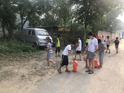 活动正式开始,志愿者与孩子们沿村路捡拾垃圾,从宽阔坦荡的公路到毫不起眼的角落,垃圾桶满了一次又一次。夕阳笼罩下的肖窑村,挥洒着大家劳动的汗水,回荡着大家句句环保的口号声。队伍不时路过乘凉的村民,孩子们热情的走上前,递一本环保宣传手册,说一句环保标语,收获一份赞美的目光,不少村民受到号召,自愿加入环保实践的的行列当中。实践课堂开展得十分顺利,小朋友们纷纷表示不仅自己以后一定不会乱扔垃圾,还会随时提醒身边的人注重保护环境。