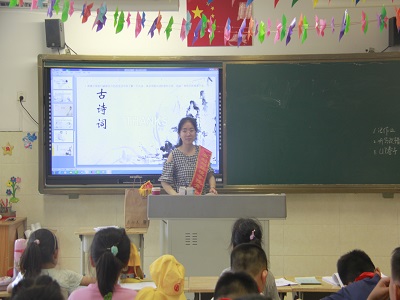 下午4点10分,志愿者们到达卧龙小学,同学们对大家的到来表示热烈欢迎并与大家热情交流,洋溢的一张张笑脸是对志愿活动的激励和肯定。与以往不同的是,这次将通过寓教于乐的方式带来一个绘声绘色的课堂,课堂伊始,志愿者们通过游戏来活跃气氛,吸引学生兴趣。志愿者提前准备一些著名的古诗词,同学们通过抢答的方式来背诵古诗,流畅无误者将会获得奖品,同学们纷纷积极参与,展示自己的知识底蕴,如火如荼的游戏将课堂氛围推向高潮。游戏结束后,志愿者们向同学们详细介绍了“诗仙”、“诗圣”、“诗囚”及其代表作《静夜思》、《望岳》、《游子吟》,并解释当时的创作背景及诗人心情,同学们认真听讲并通过齐背古诗的方式表达对古诗的热爱及对诗人的敬仰。短暂的课堂也渐渐在欢声笑语中度过。
