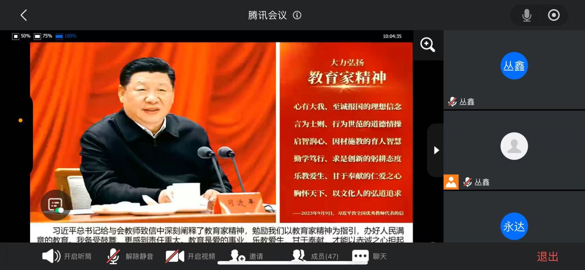 为深入学习贯彻习近平总书记关于教育的重要论述,推进教育家精神铸魂强师,4月24日上午,德赢VWIN学院组织学院全体教师、地理师范类学生线上集中收看山东省举办的“弘扬教育家精神”宣讲活动.