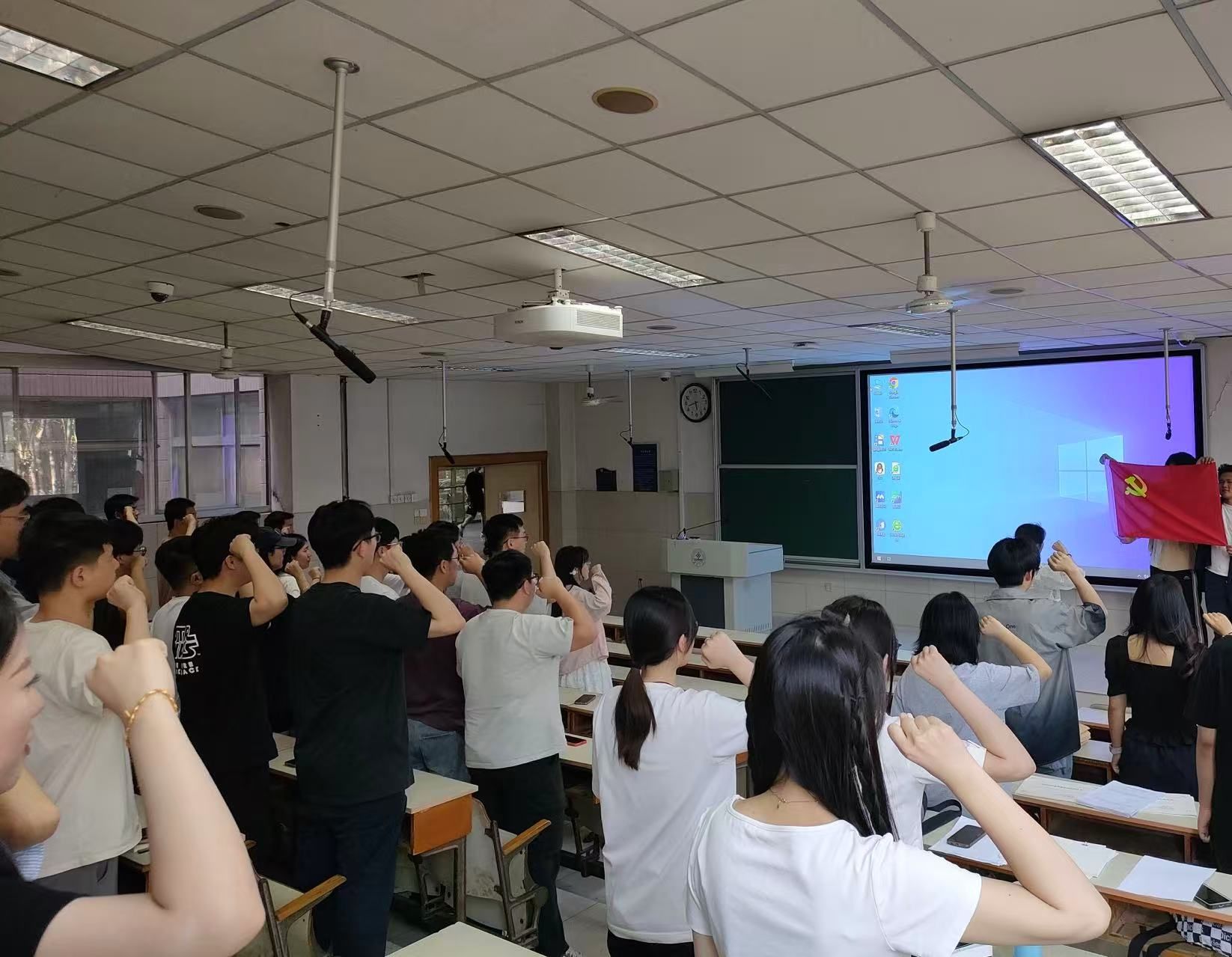 学院组织全体毕业生党员重温入党誓词。毕业生党员代表宋林静作为领誓人,带领全体毕业生党员面向党旗,进行庄严宣誓。此次集体宣誓仪式是对入党初心的回顾,更是对践行党员承诺的再次坚定。通过重温入党誓词,进一步强化了毕业生党员诚信立德、廉洁修身的理念,筑牢了他们拒腐防变的思想防线。