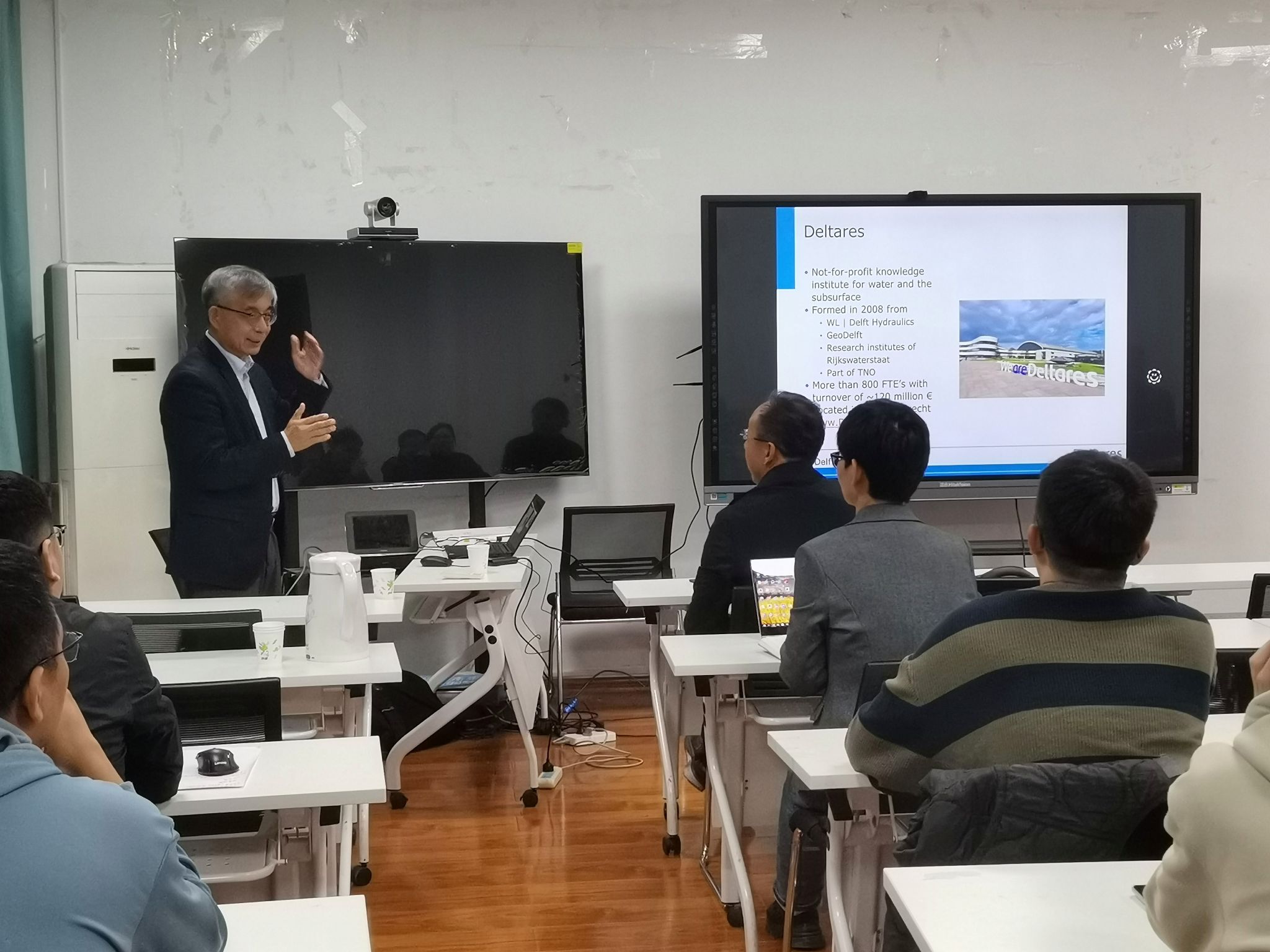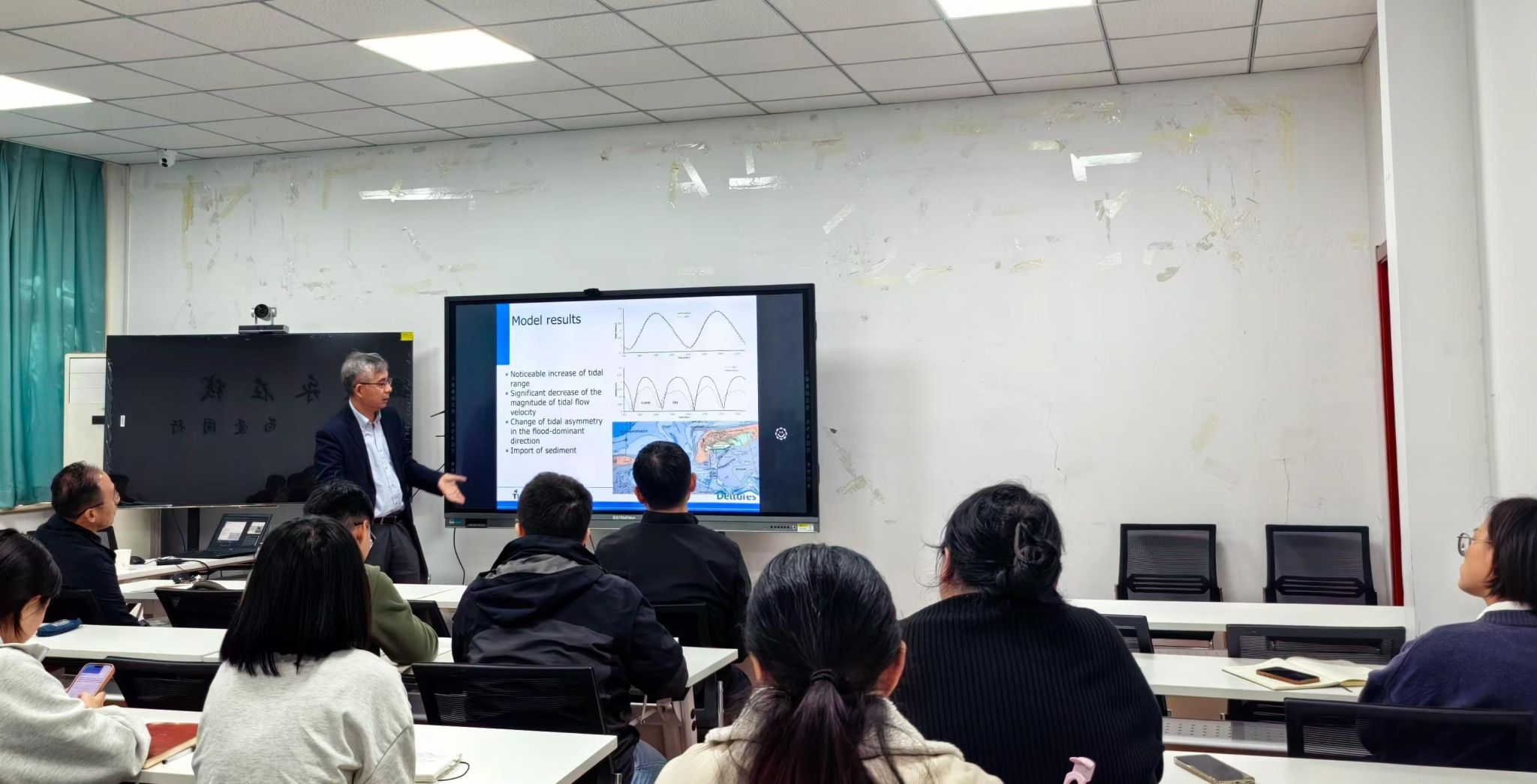 王正兵教授以《Water related problems in the Netherlands and China》为题,围绕荷兰有关水的问题:“著名水利工程及其历史背景”、“水利工程对环境的影响”、“洪涝灾害防治现况”、“未来的挑战和应对策略”,以及中国有关水的问题:“水管理的挑战与思考”等方面展开报告。