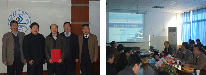 聘任仪式上,济南大学副校长杜斌、济南大学科技处刘宗明处长、资源与环境学院党委书记马振民、院长徐征和对刘维屏教授受聘为我校客座教授表示欢迎,同时高度评价了刘维屏教授在其研究领域的贡献和成就,并表示刘维屏教授聘为我校客座教授后,必将有利于推动济南大学资源与环境学院环境化学领域的创新与发展。