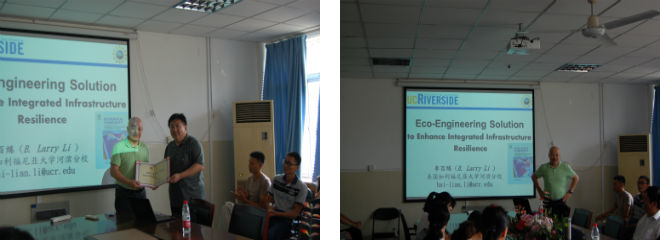 9月8号上午,美国加利福尼亚大学河滨分校生态学终身教授,国际生态与可持续发展研究中心主任,国际干旱区生态学研究中心联合主任,中美(政府级)农业生态与可持续发展联合研究中心共同主任李百炼教授应邀来我校资源与环境学院进行学术交流,并聘为济南大学客座教授。杜斌副校长以及资源与环境学院相关学科教师与研究生参加了聘任仪式与学术讲座。