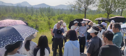 在玉符河沿线开展了济南典型泉水补给带的实习。带队教师结合馒头山与华山地质岩层特点,讲解了济南泉水形成与补给原理,让学生熟悉不同地质年代典型岩层的透水储水特性,更深刻的理解了大气降水、地表水、地下水三水转化关系。