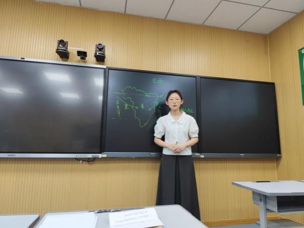 比赛中,参赛选手根据现场抽取的题目,进行模拟授课和现场答辩。本次比赛从多个维度对选手进行全面考察,包括教姿教态、教学设计、重难点把握、板书设计等。参赛选手们准备充分,以饱满的热情投入比赛,凭借清晰的教学思路和各具特色的教学方法,展现出了较高的教学水平和精神风貌。经过激烈角逐,王玥琳和燕晓倩脱颖而出,她们将代表学校参加2025年“田家炳杯”全日制教育硕士专业学位研究生学科教学(地理)方向教学技能大赛。