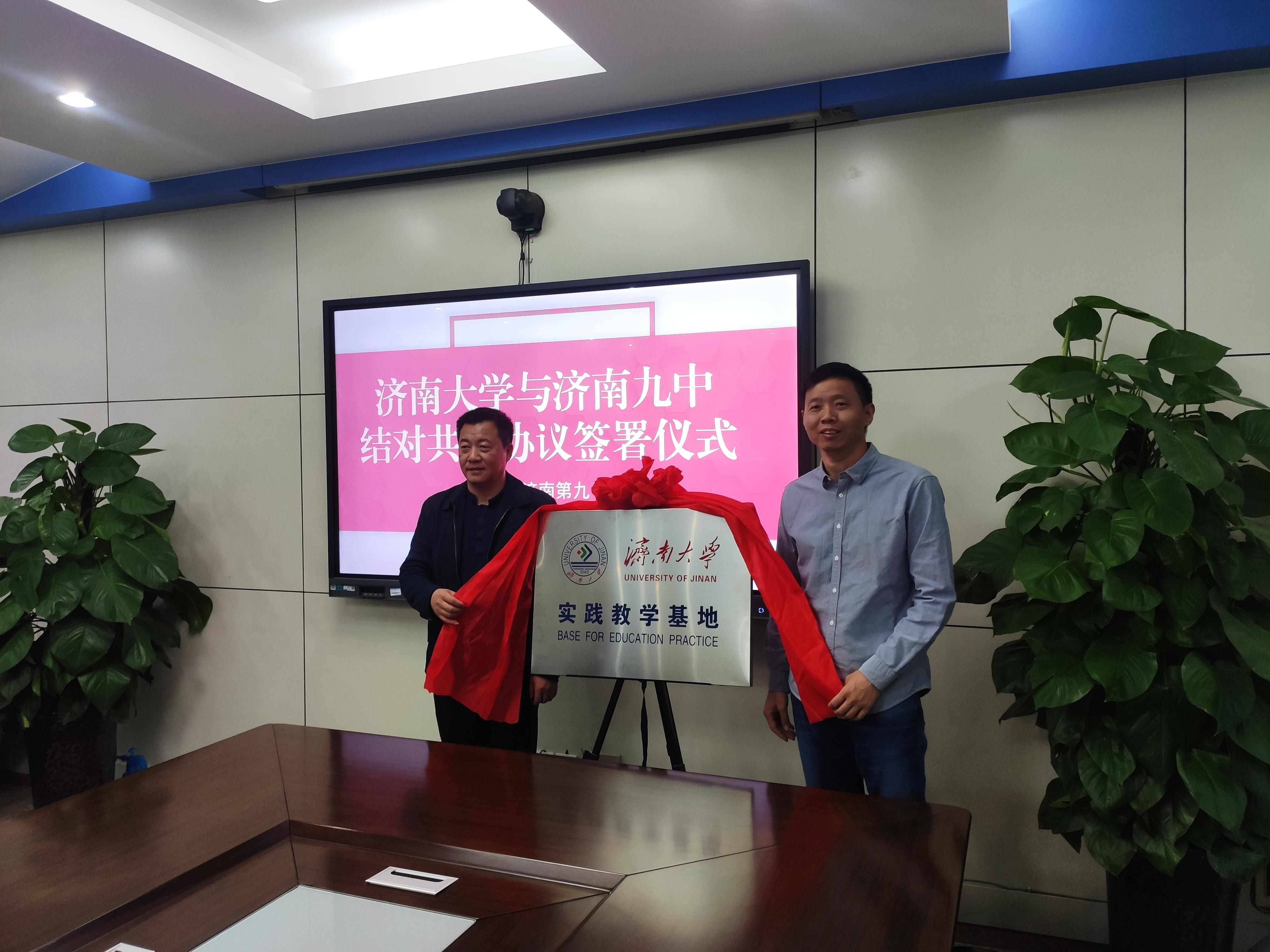会上,苗翠强校长与徐征和院长共同签署《济南大学—山东省济南第九中学合作共建战略合作协议》和《济南大学本科实践教学基地建设协议》。韩东副校长和庞桂斌副院长共同为济南大学本科实践教学基地揭牌。双方商定,依托山东省济南第九中学的组织、平台和教育教学资源,以及济南大学德赢VWIN学院的科研、学科和人才优势,双方在人才培养、学生研学、决策咨询、教育教学等方面开展多元化、立体化的合作交流。本次战略合作对于推动学院服务社会、提高人才培养质量具有重要意义,实现了高校、高中、学生三方共赢。