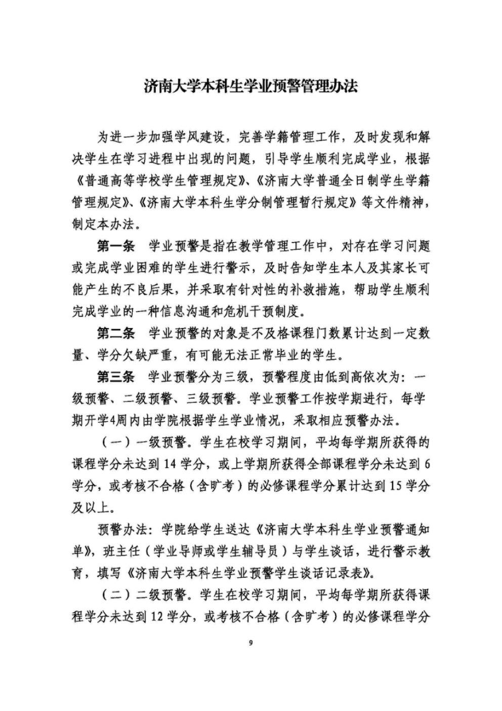 20170326济大校字〔2016〕225号-济南大学本科生学业预警管理办法